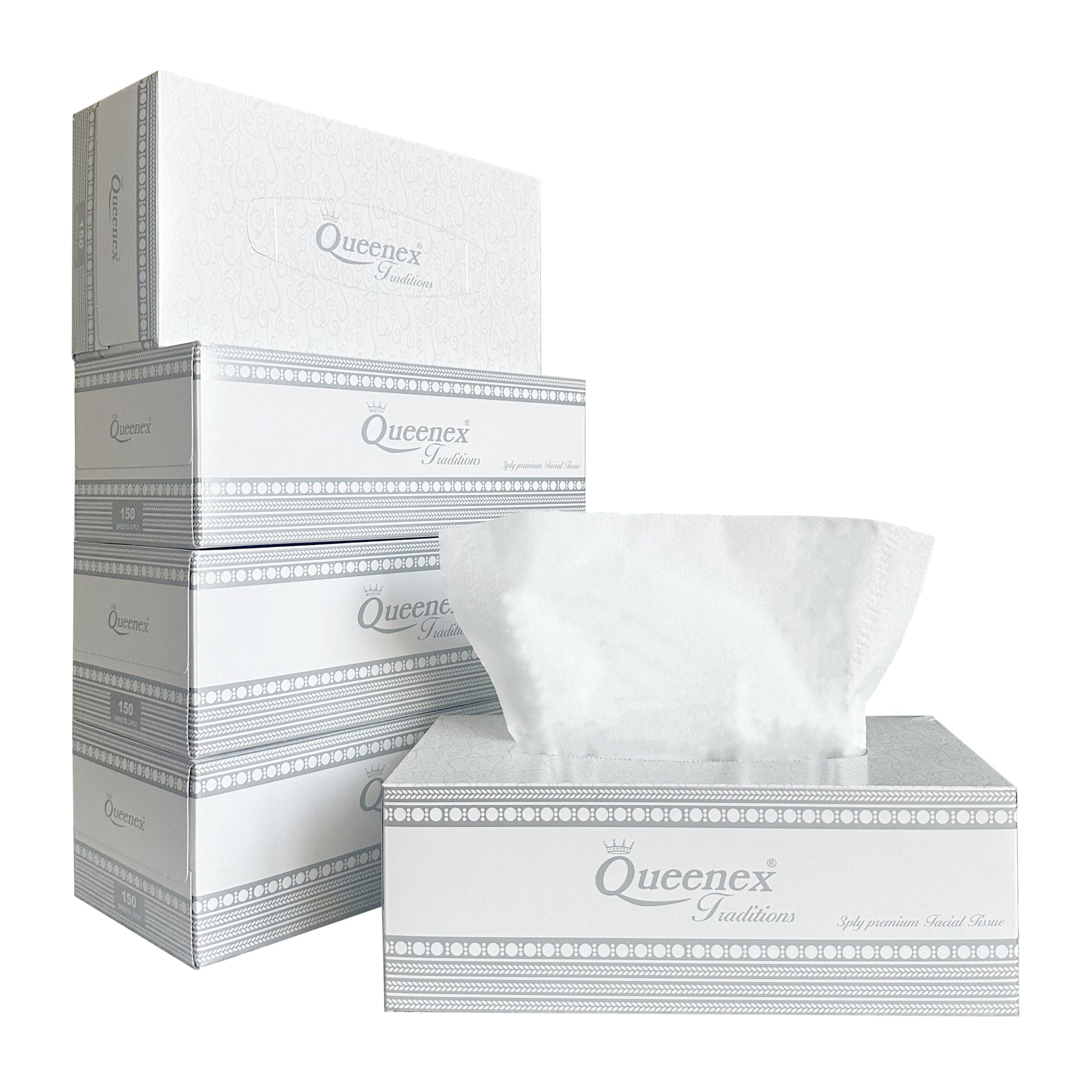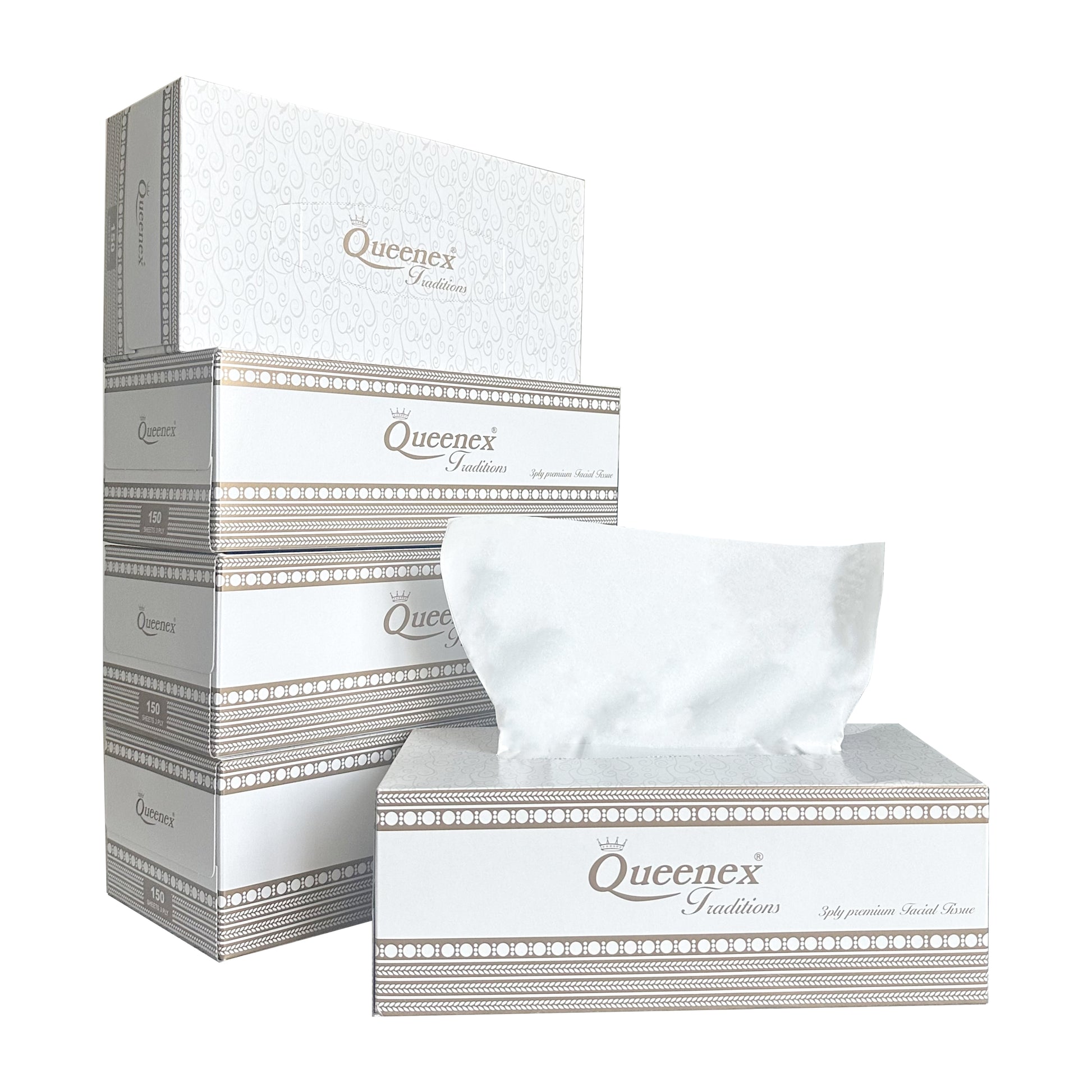 Queenex Ultra Soft Facial Tissues, 150 Tissues per Box, 3-Ply (5-Pack)